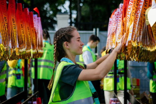 Волонтёры задействованы как в дни самих стартов, так и накануне, и помогают в работе команды организаторов на выдаче номеров, Спортивных выставках, в командах спорта, PR, режиссёрской группы и других направлениях.